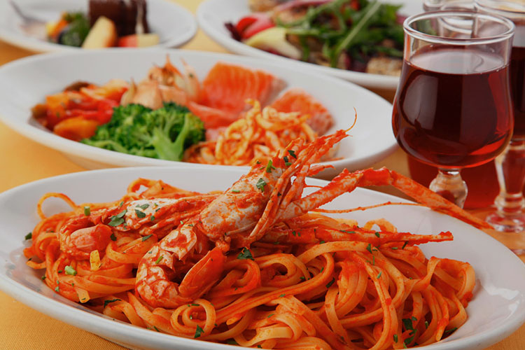 ヴェネチアが発祥とされるイカスミ料理は当店の自慢メニューのひとつ。通常のイカスミより深みがあるソースの味わいをお楽しみください。